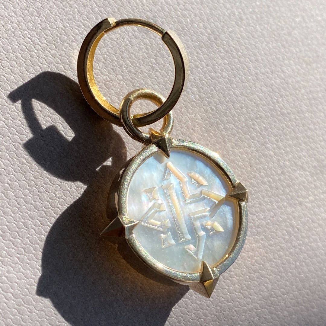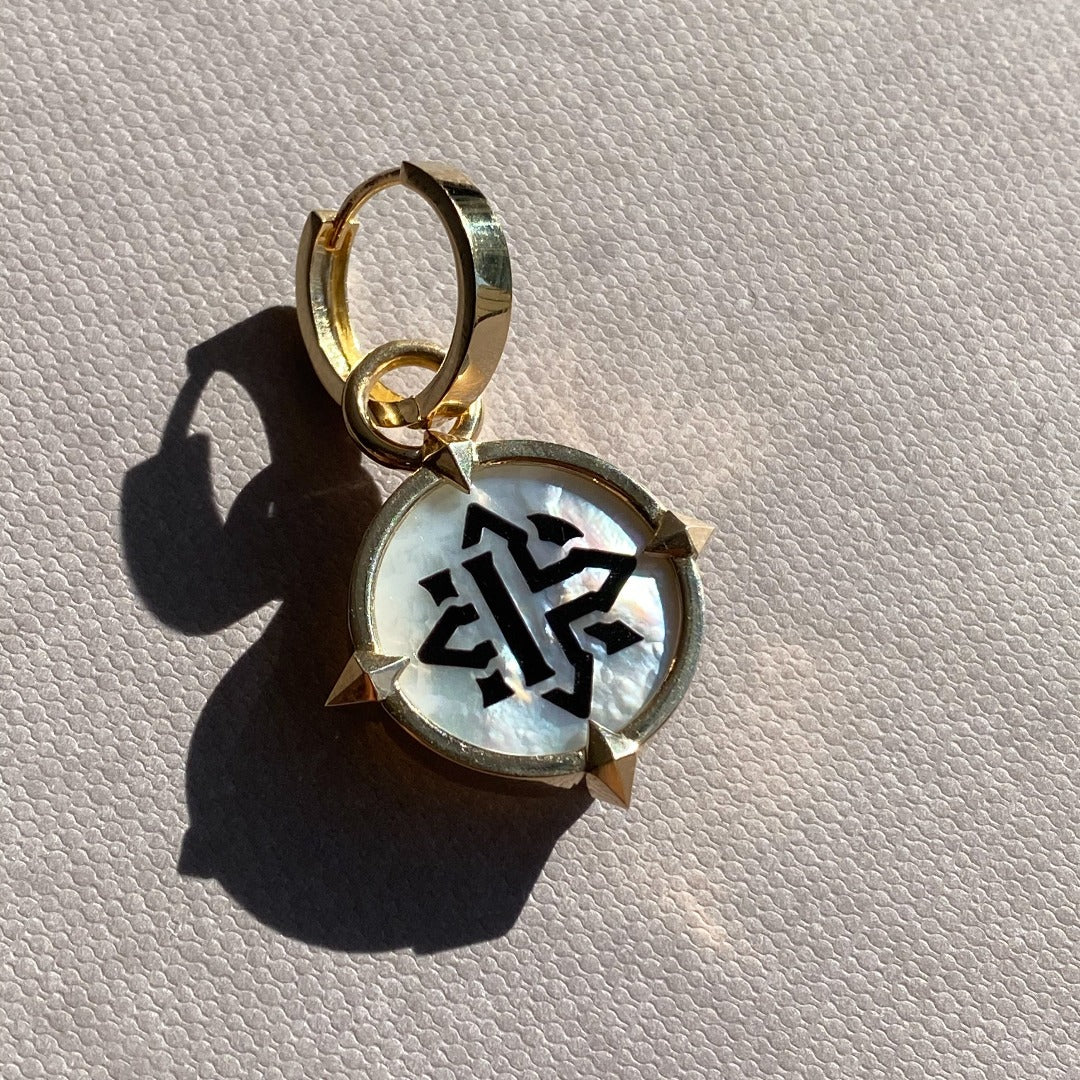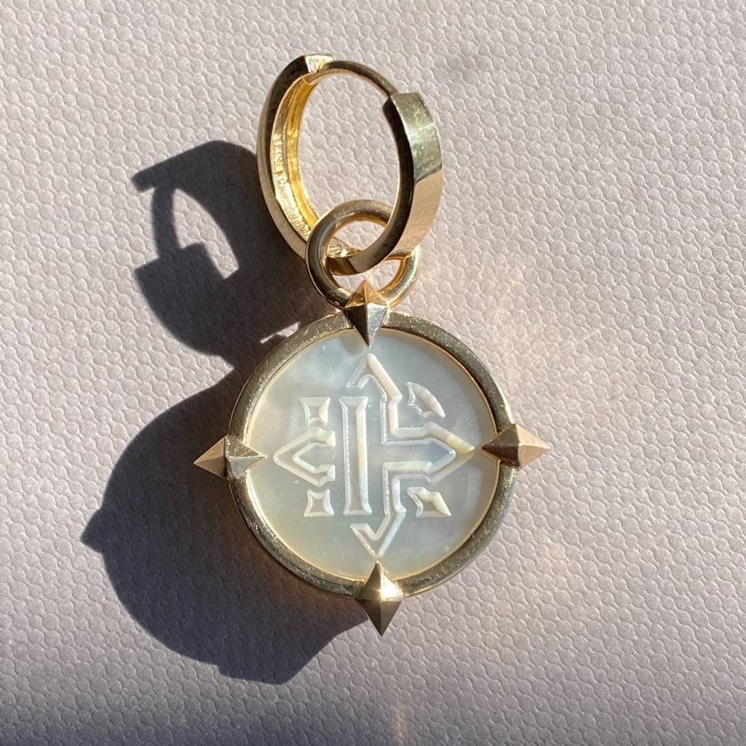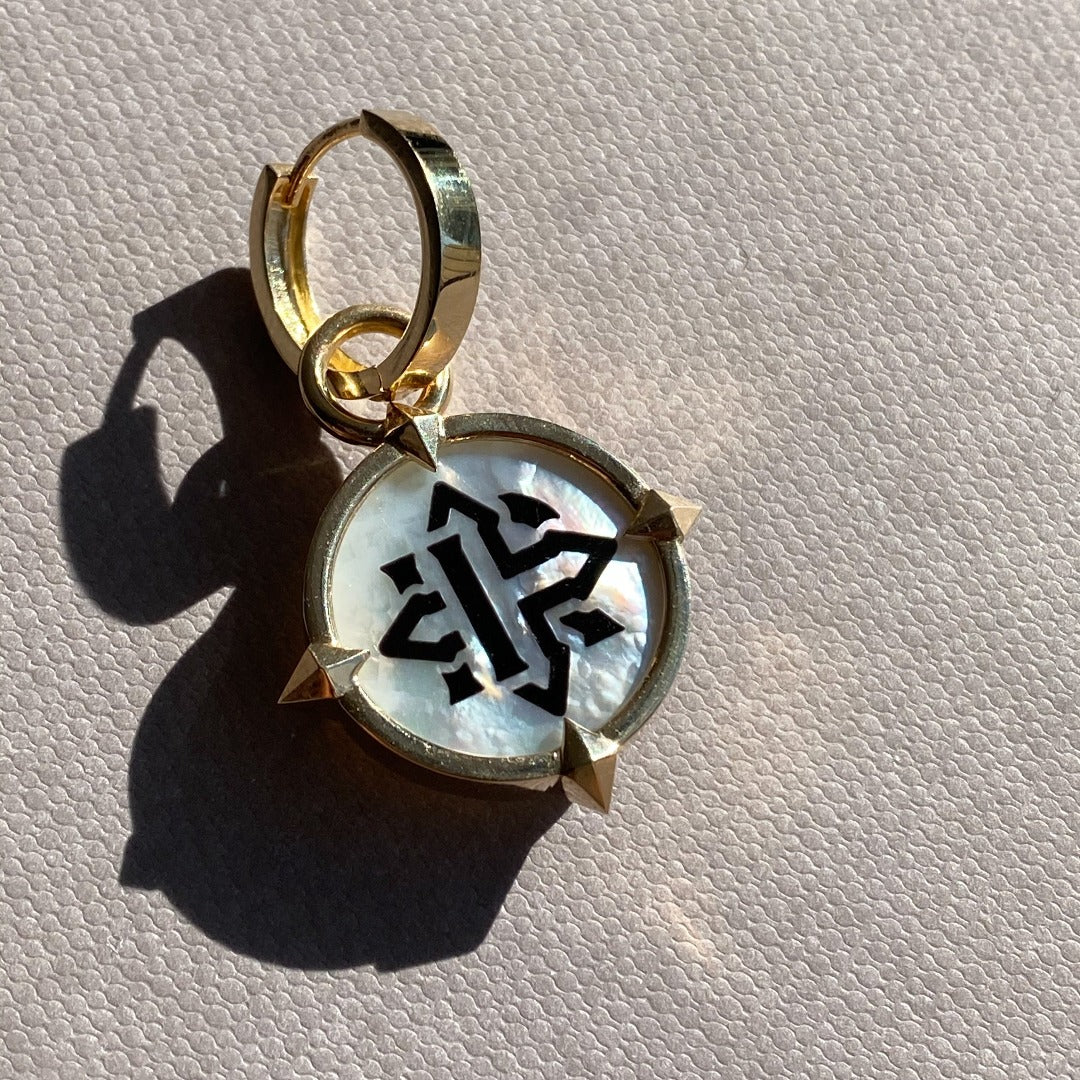 EARRINGS "COMPASSES" WITH MOTHER-OF-PEARL CAMEO / SOLID GOLD