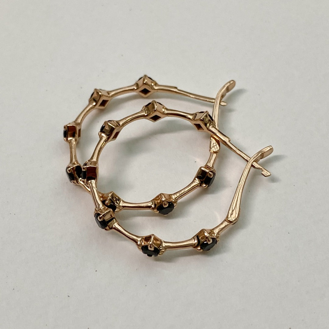 EARRINGS "TRAP" WITH BLACK DIAMONDS / SOLID GOLD