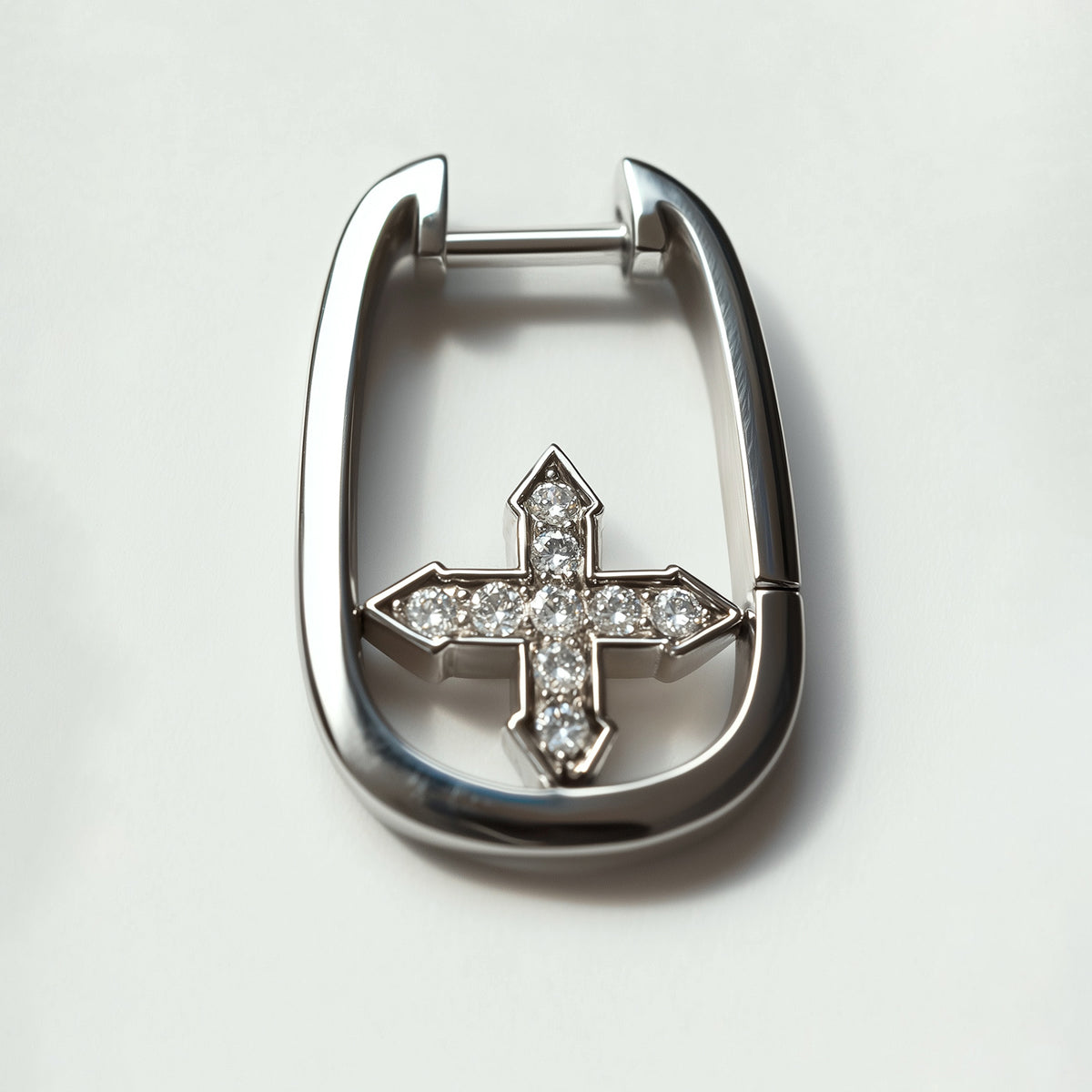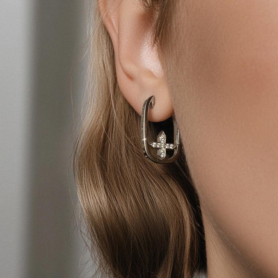 HOOP EARRING "STAR ON A PIN" WITH MOISSANITE | SILVER