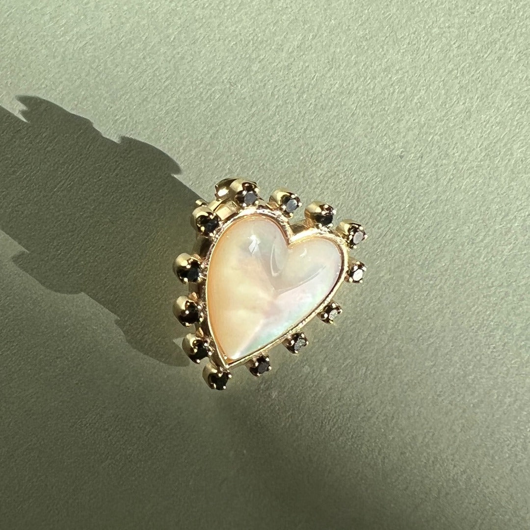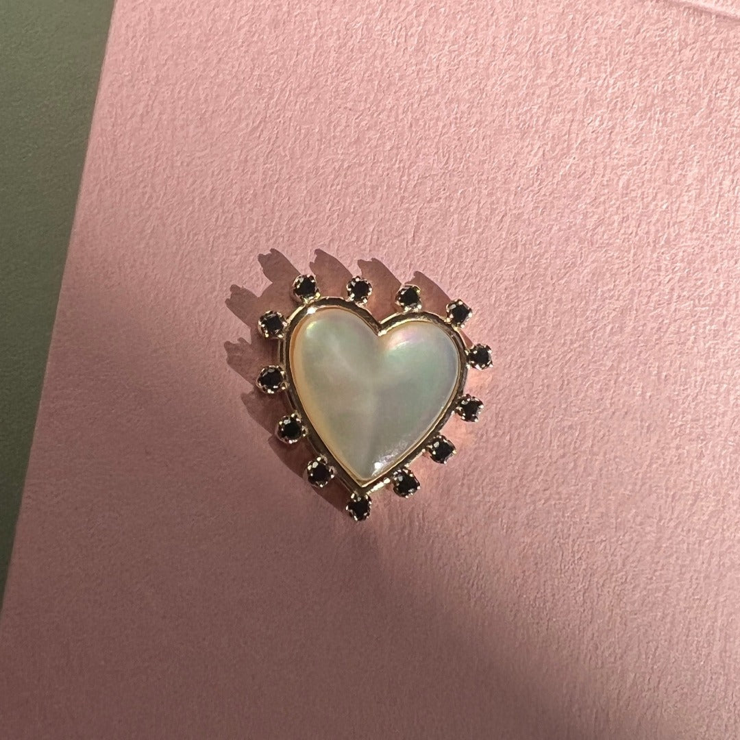 STUD "HEART" WITH MOTHER-OF-PEARL & BLACK DIAMONDS / SOLID GOLD