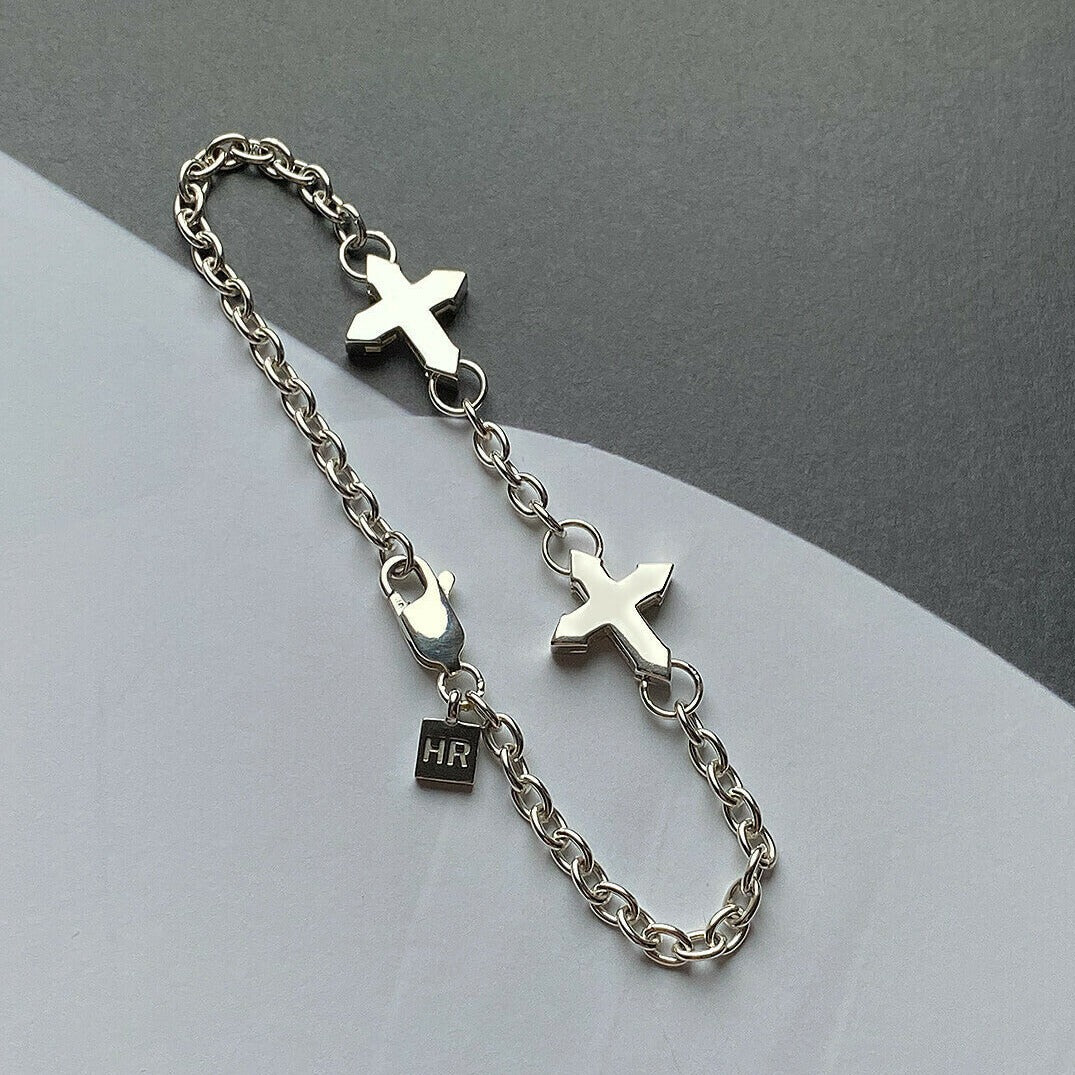 CHAIN BRACELET "TWO CROSSES" / SILVER