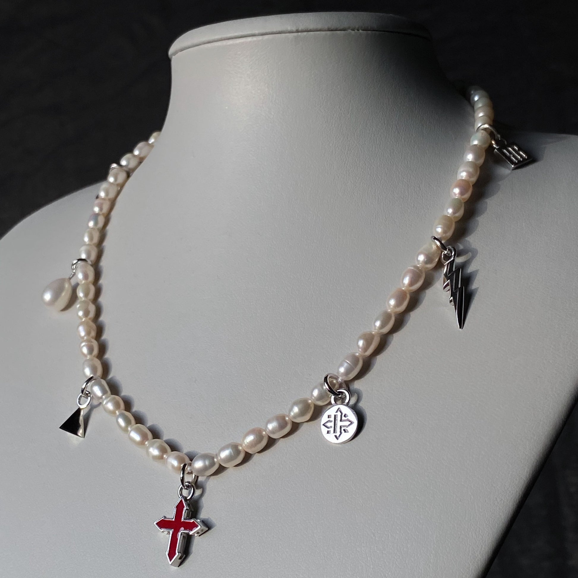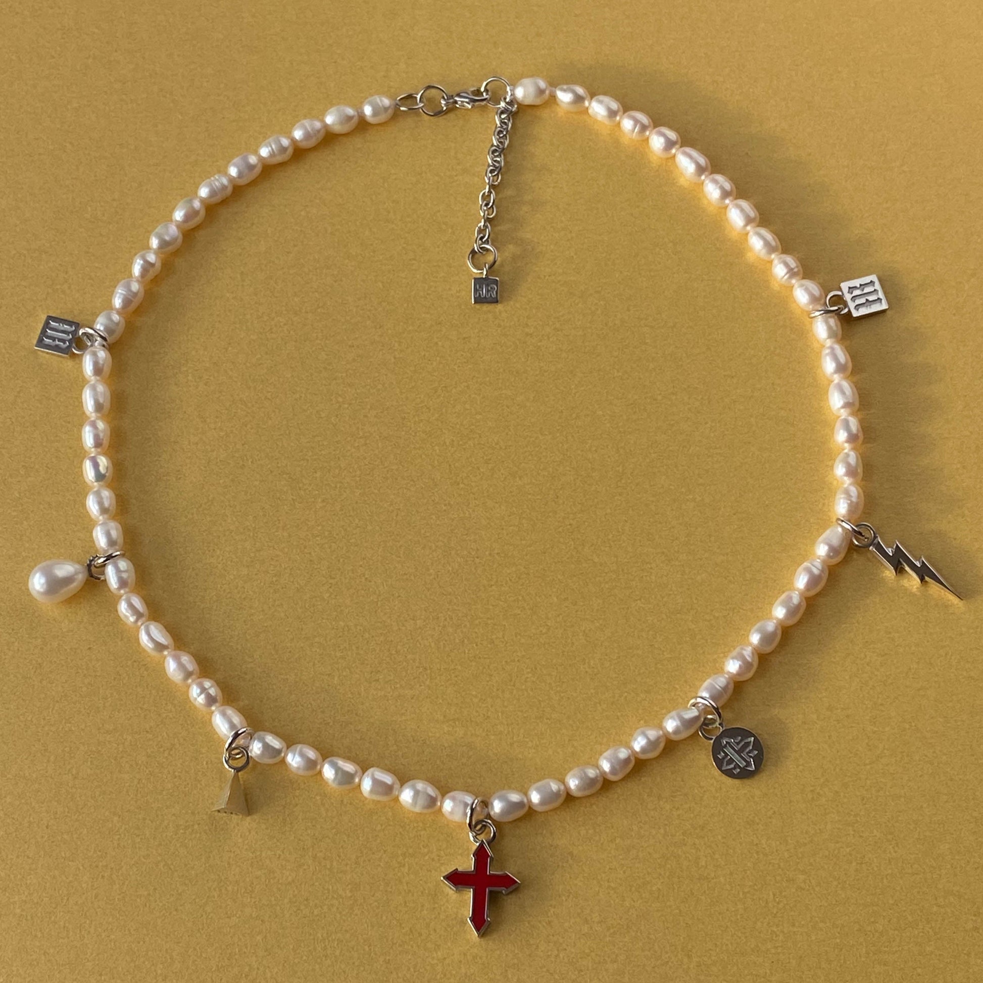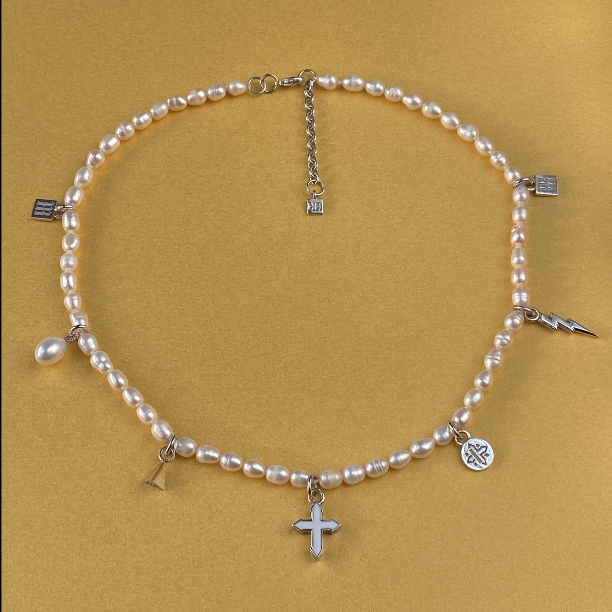 freshwater pearls | lock & pendants in sterling silver | colored enamel | length: 16 in (40.5 cm)