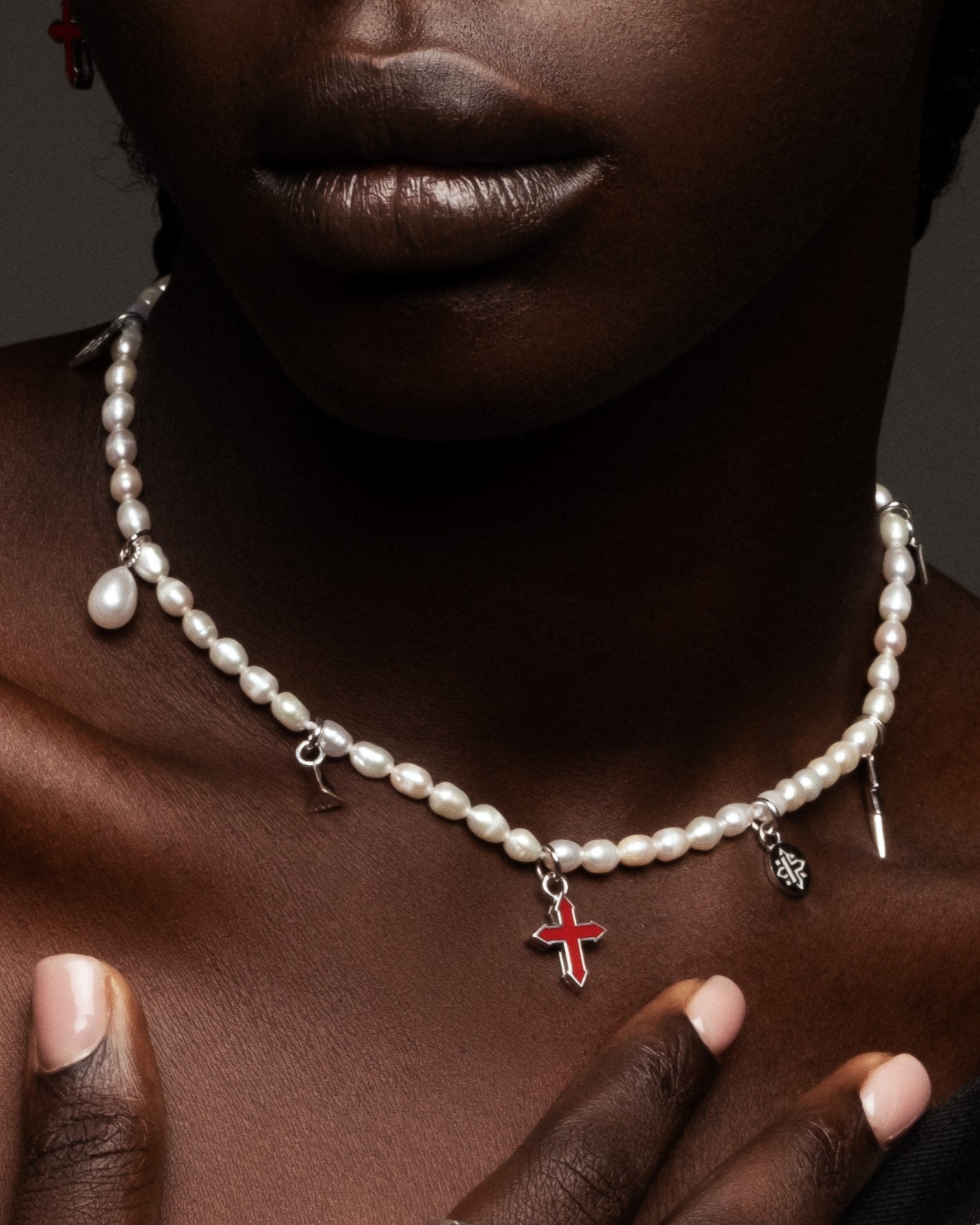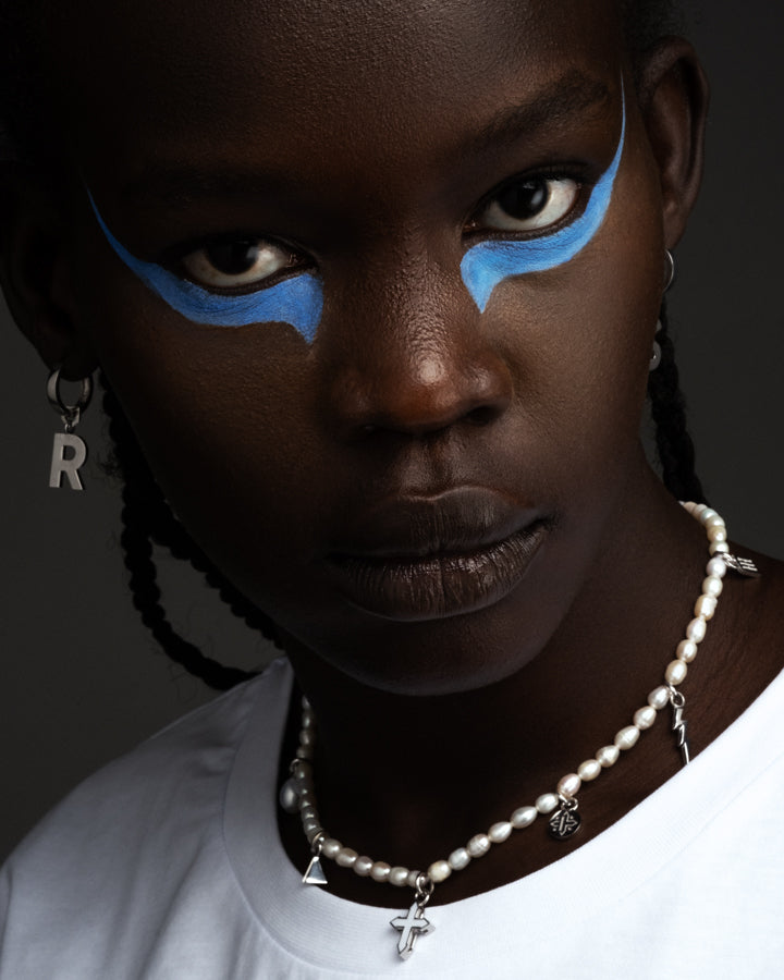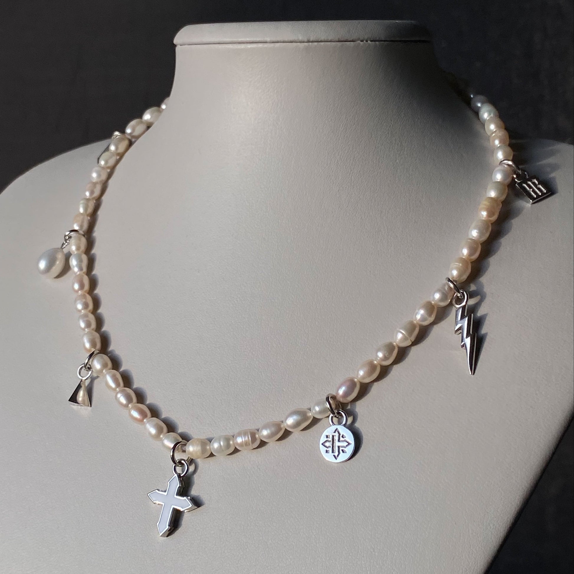 freshwater pearls | lock & pendants in sterling silver | colored enamel | length: 16 in (40.5 cm)