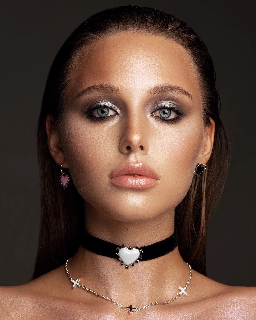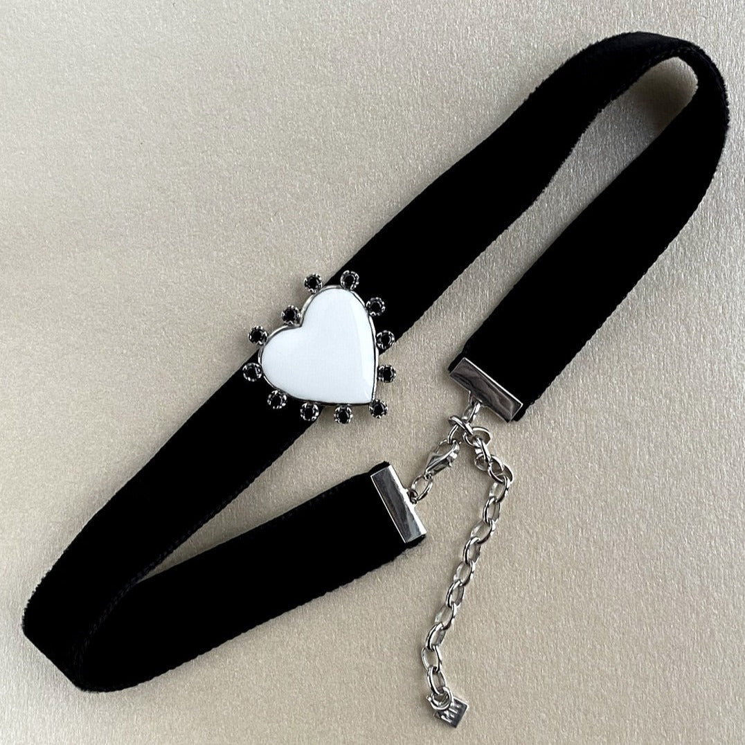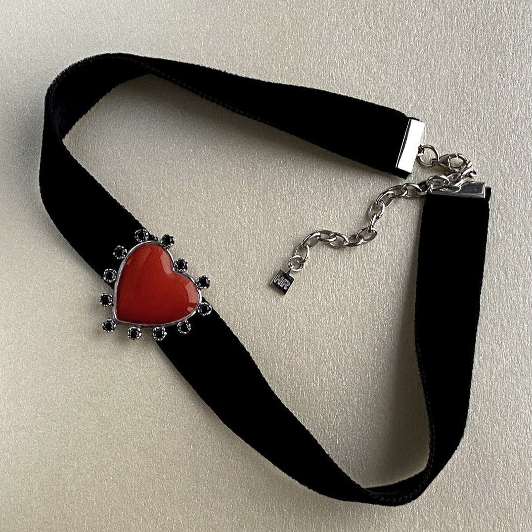 CHOKER "BIG HEART" WITH ENAMEL & BLACK SPINEL / SILVER