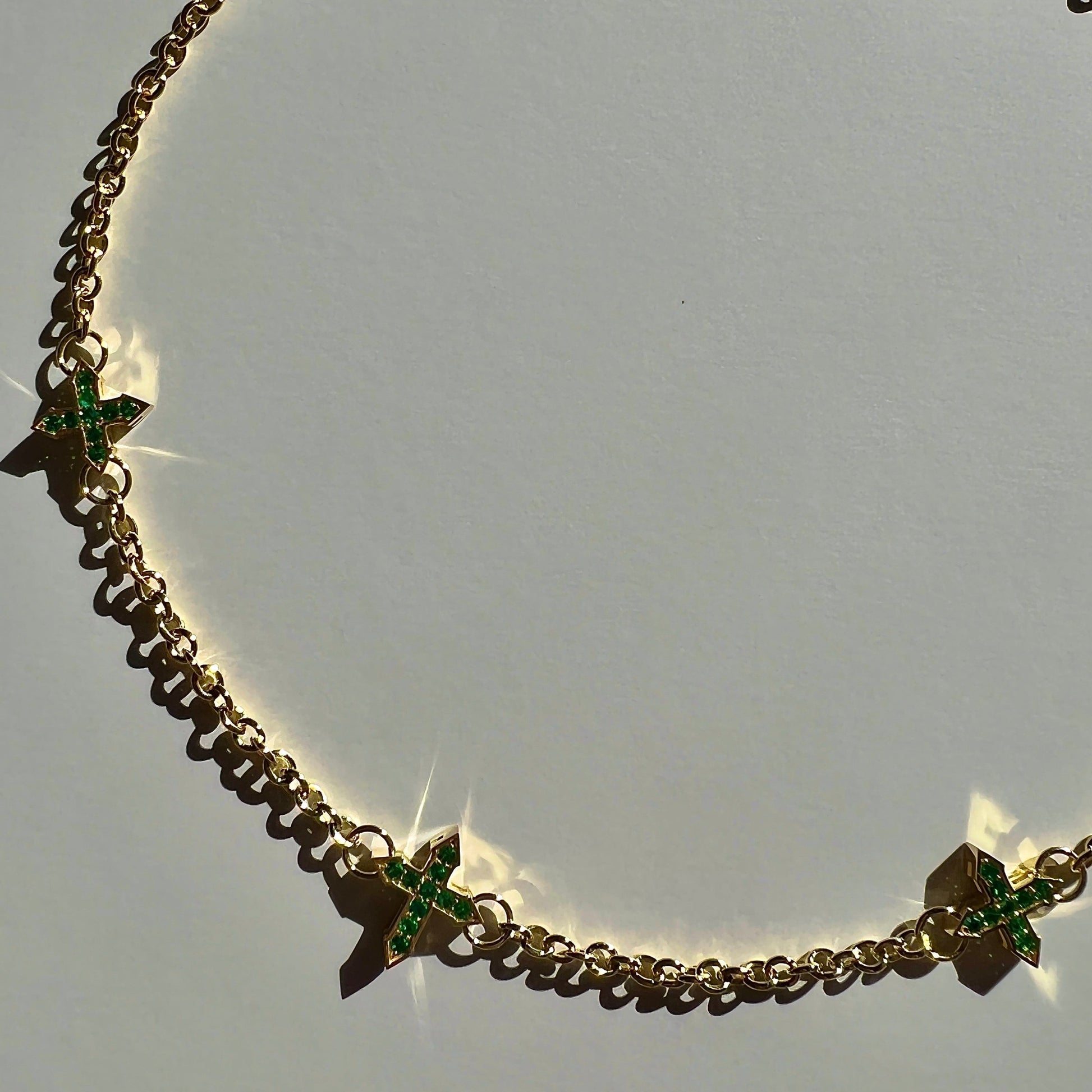 NECKLACE "TRINITY" WITH EMERALDS / SOLID GOLD