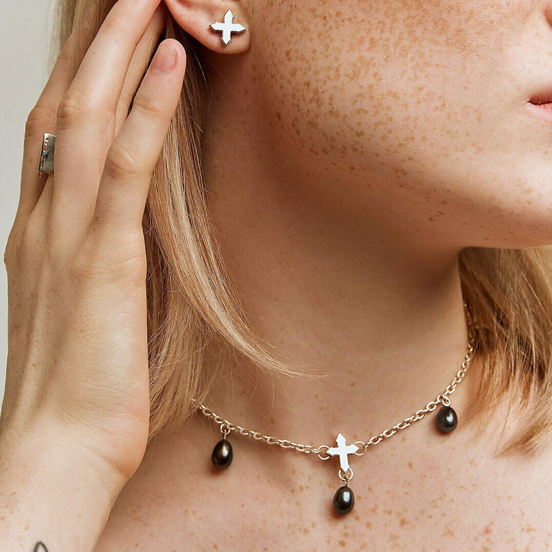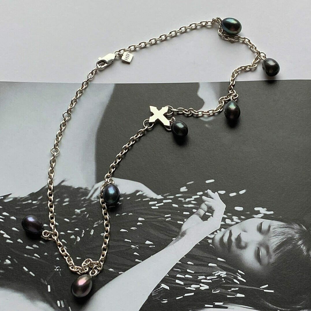 ONE - SEVEN CHAIN / SILVER & BLACK PEARLS