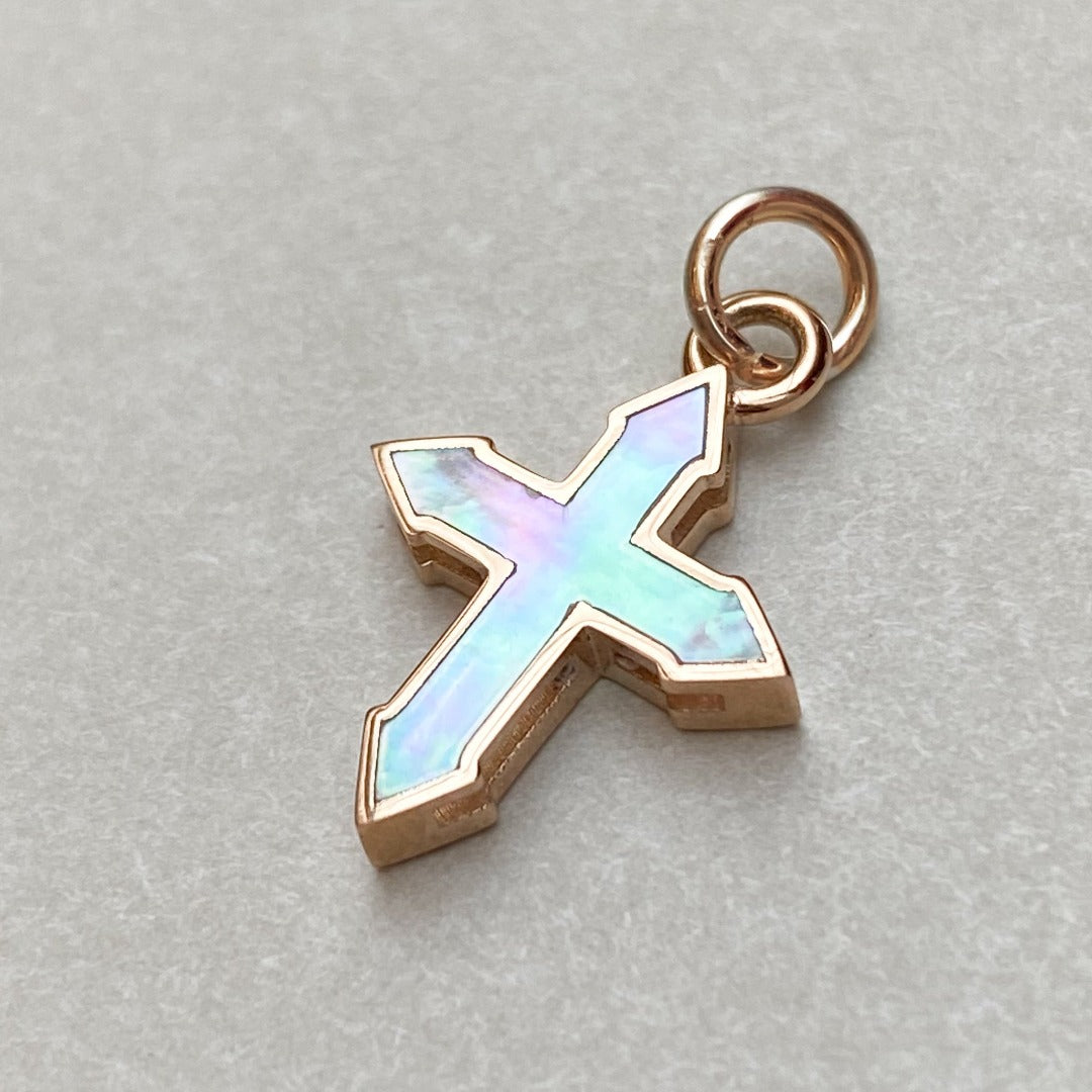 PENDANT CROSS "VENUS" / SOLID GOLD & MOTHER-OF-PEARL