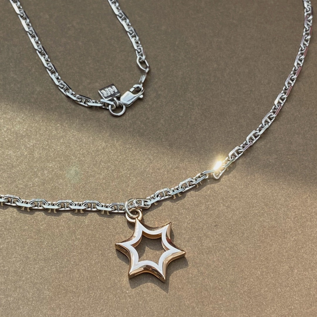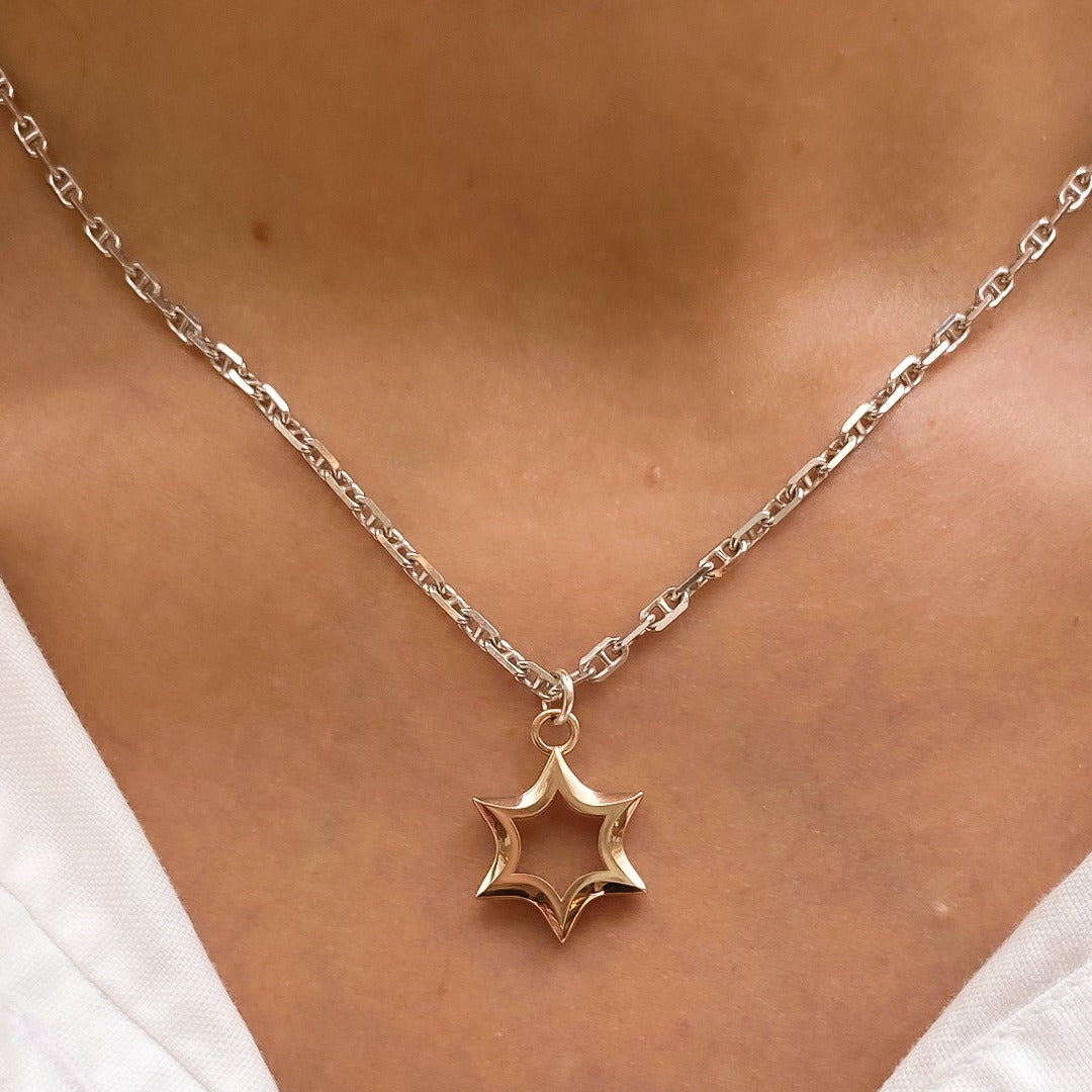 PENDANT "STAR OF DAVID" ON A SILVER CHAIN / SOLID GOLD