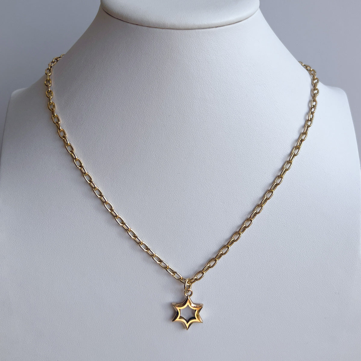 STAR OF DAVID ON THE LIGHT CHAIN / SOLID YELLOW GOLD