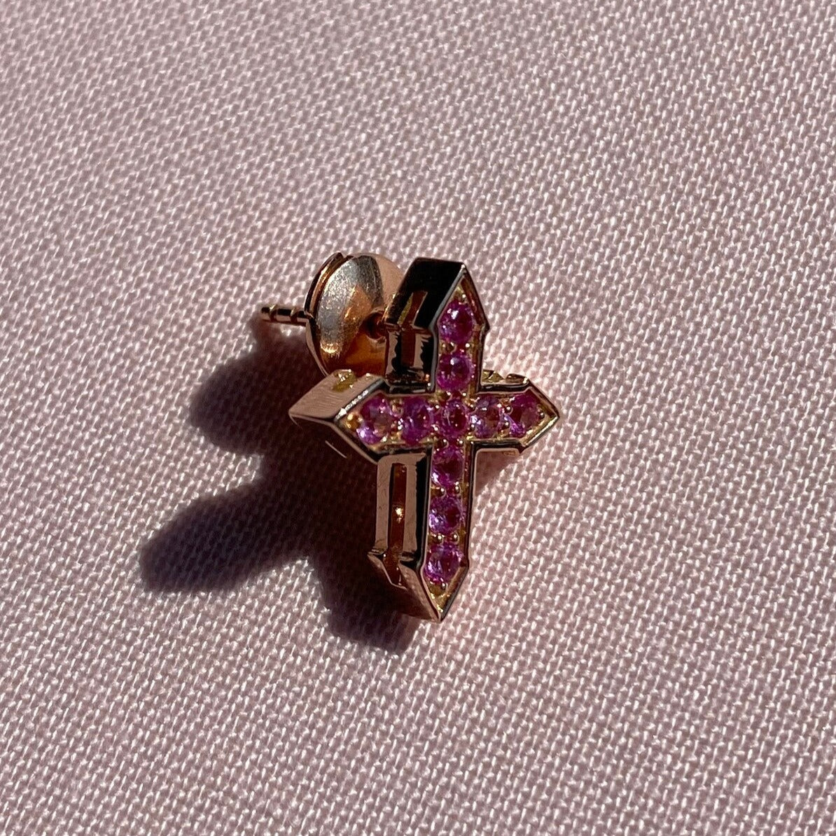 STUD CROSS "GLOW" WITH PINK SAPPHIRES / SOLID ROSE GOLD
